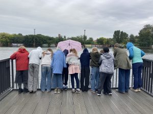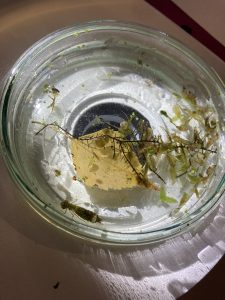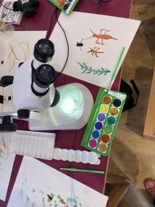 Die Teamerin Caro kescherte eine Wasser-und Pflanzenprobe heraus, die wir an Mikroskopen genau untersuchten und Bilder dazu malten.