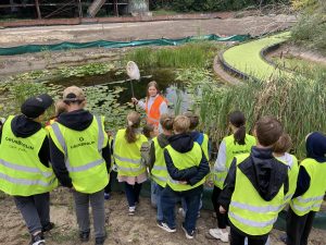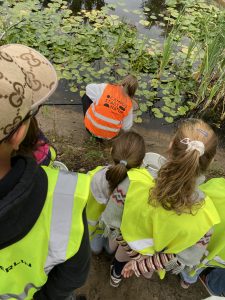 Am Teich angekommen, schauten wir uns die Tier-und Pflanzenwelt des stehenden Gewässers an.
